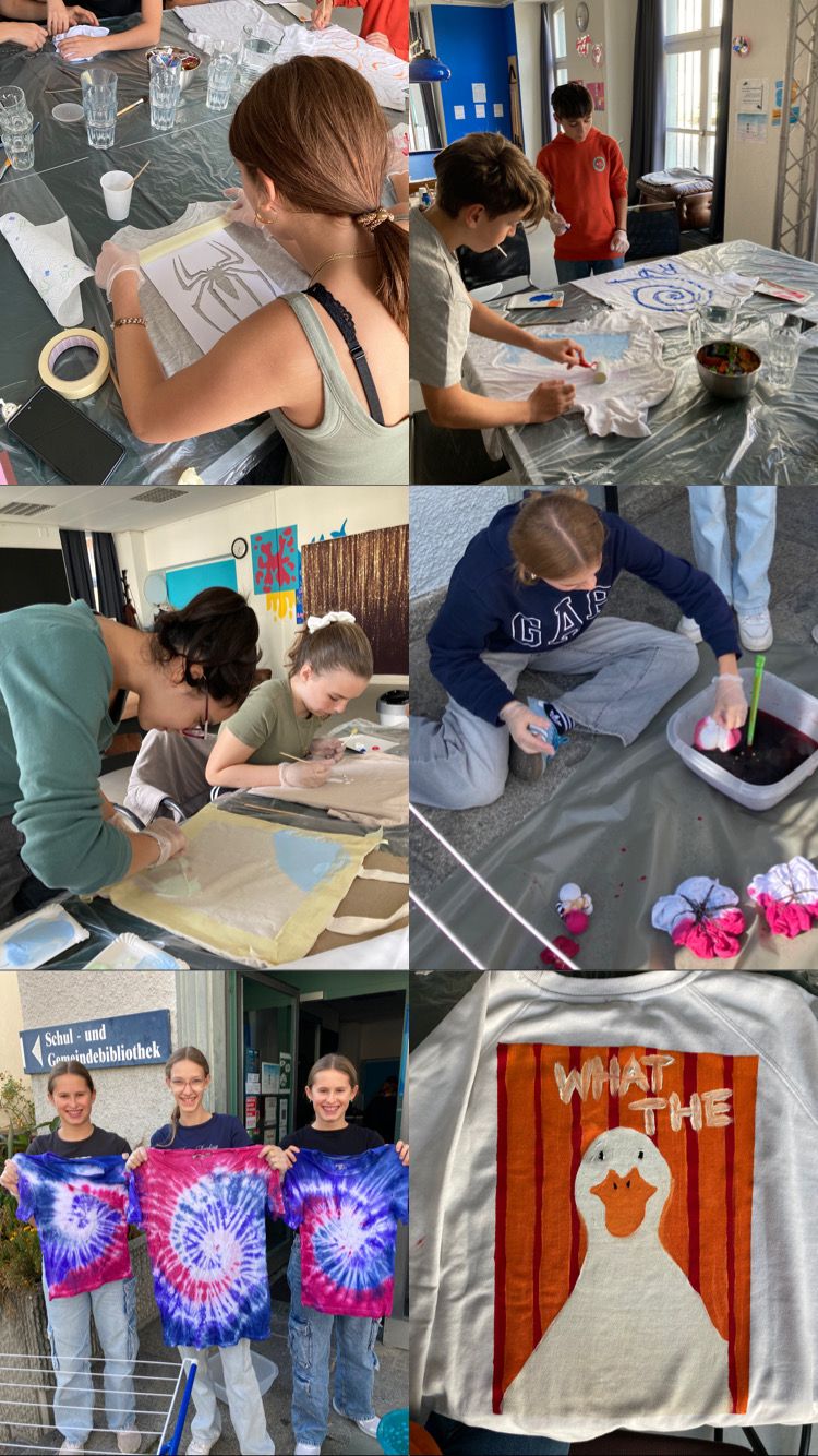 Im Anschluss fand ein kreativer Textilmal-Workshop statt. Wir stellten das Material zur Verfügung, die Jugendlichen brachten Kreativität, Neugier und Tatendrang mit. Entstanden sind viele individuelle und originelle Werke – ein Projekt, das wir sicher wiederholen werden.